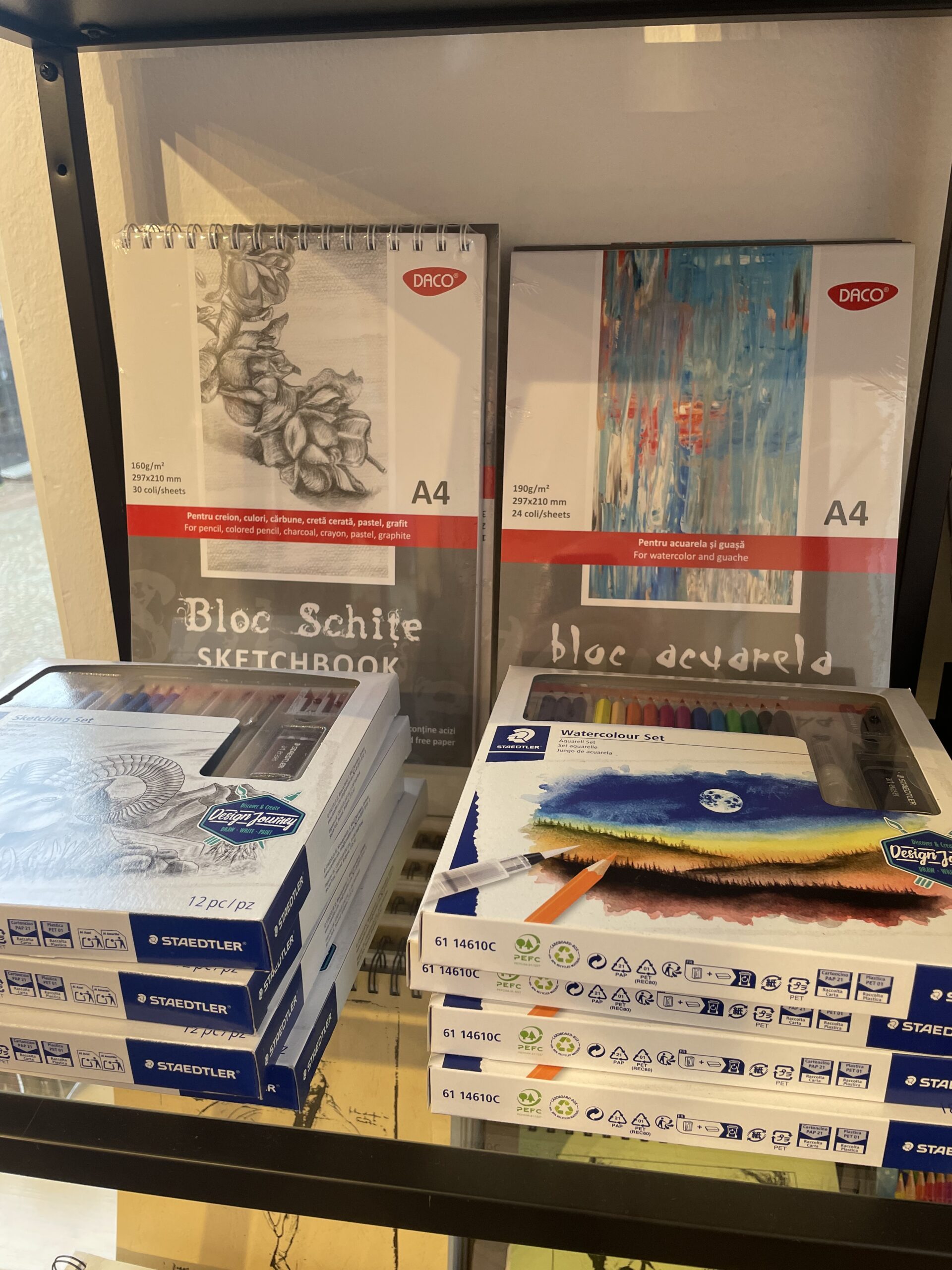 Nu har vi ett nytt sortiment i butiken för teckna, rita, måla, och ”pyssla”. Pennor, block, glitterlim, papper, stickers m.m. från flera kända märken såsom Zebra, Daco, Staedler m.fl.